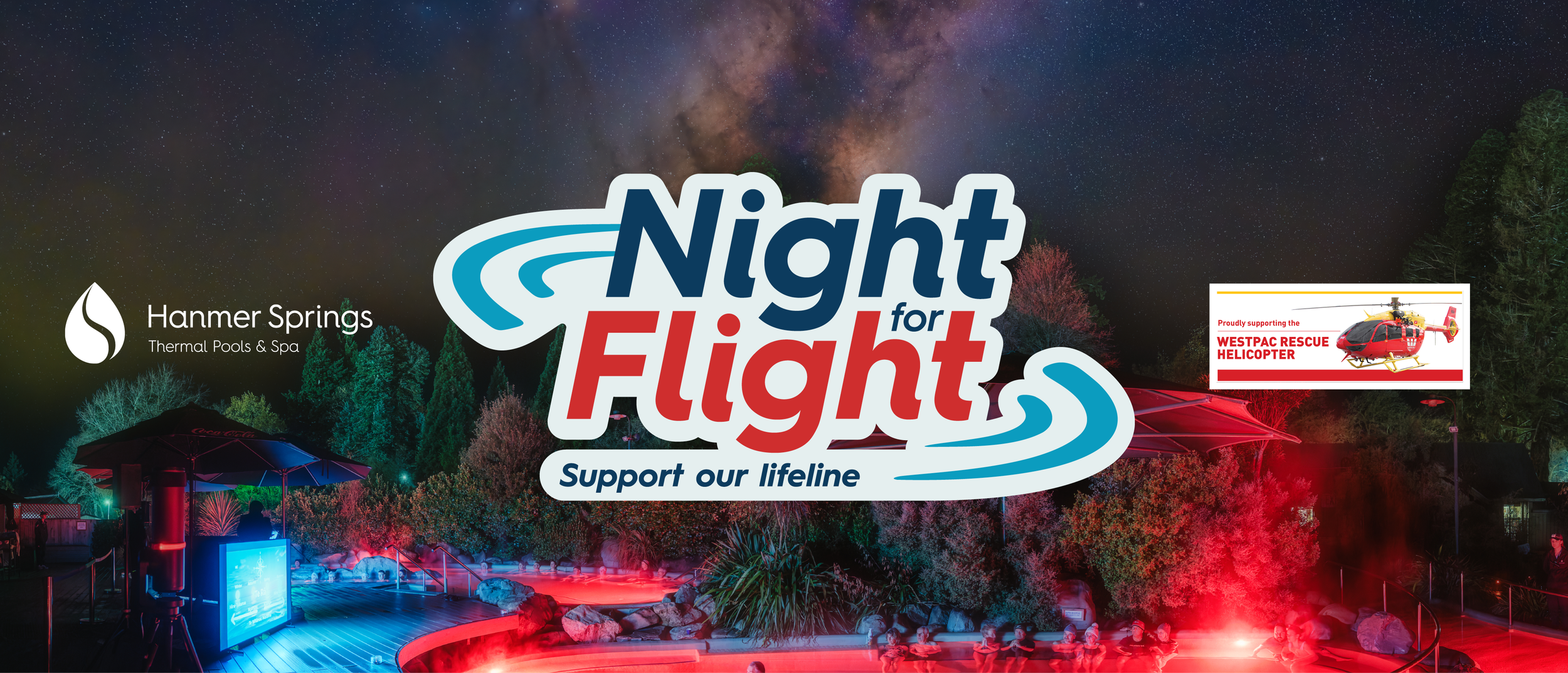 Night for Flight began with a straightforward brief: help Hanmer Springs Thermal Pools and Spa raise funds for two vital causes: the Westpac Rescue Helicopter fleet upgrade and a new community helipad for the Hanmer Springs township.